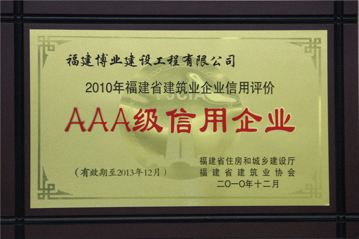 2010年福建省建筑業(yè)信用評(píng)價(jià)AAA級(jí)信用企業(yè)