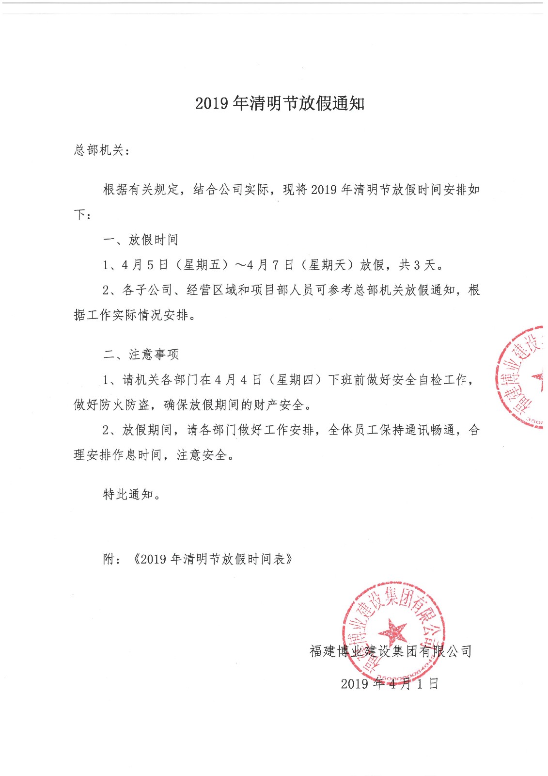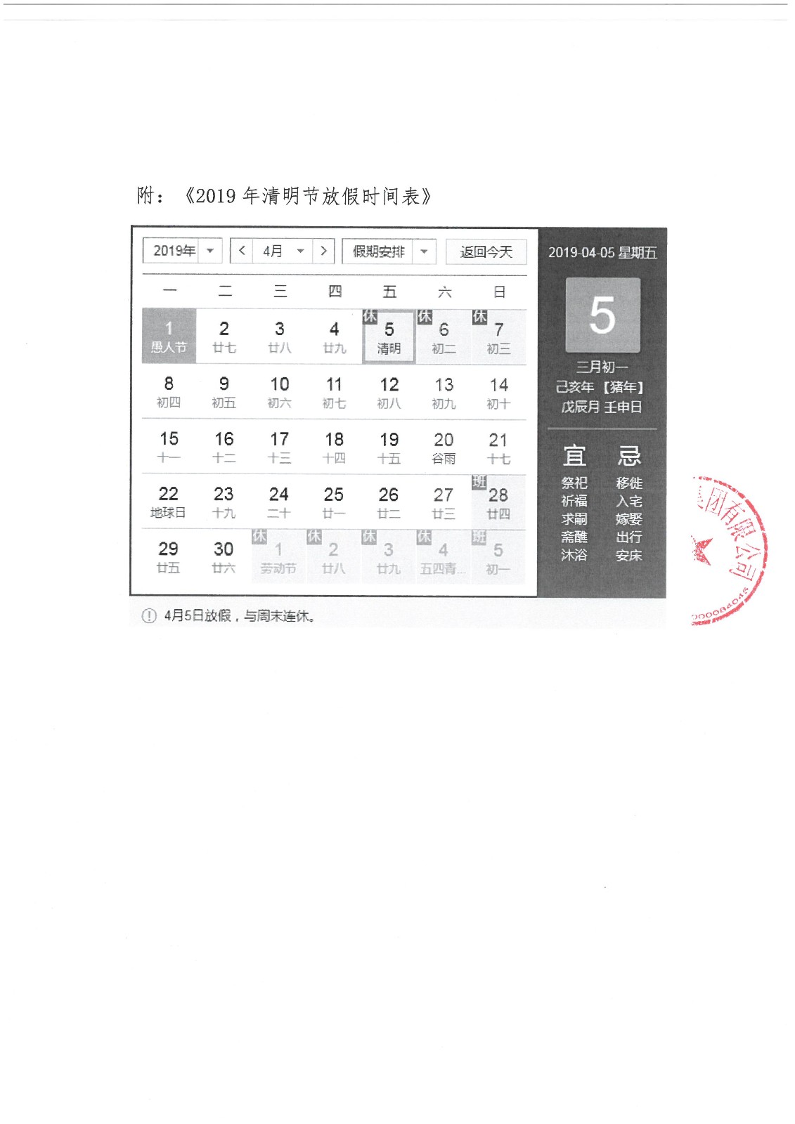 2019年清明節(jié)放假通知